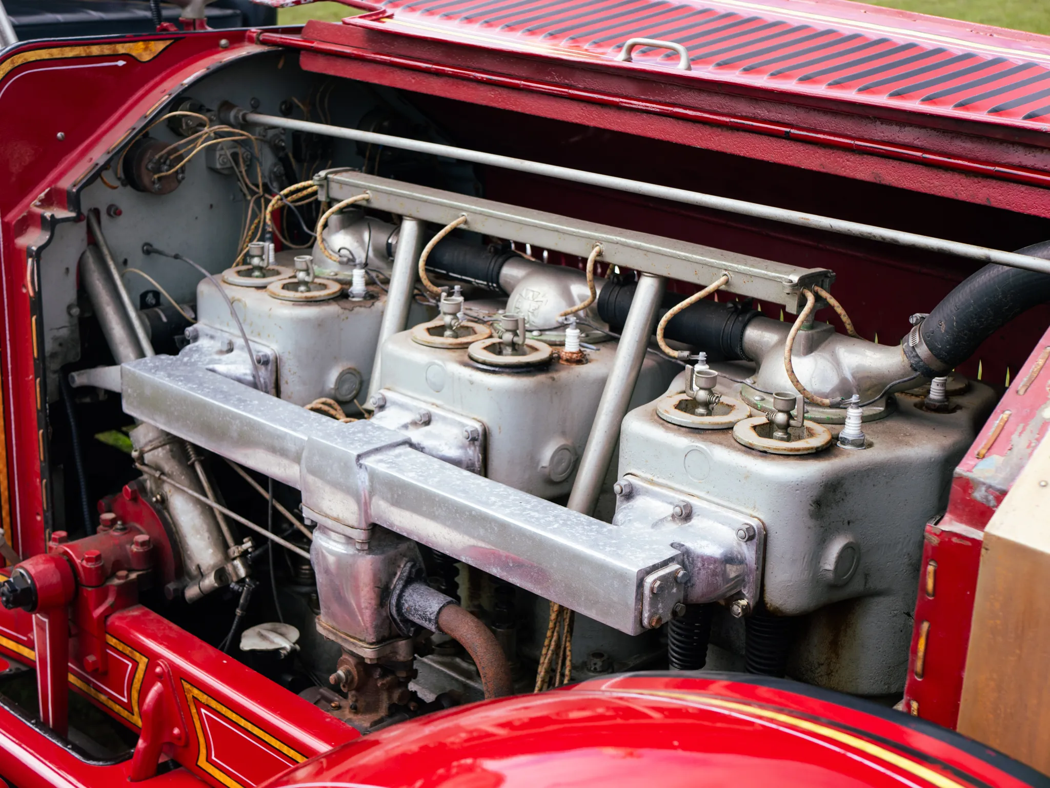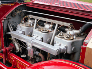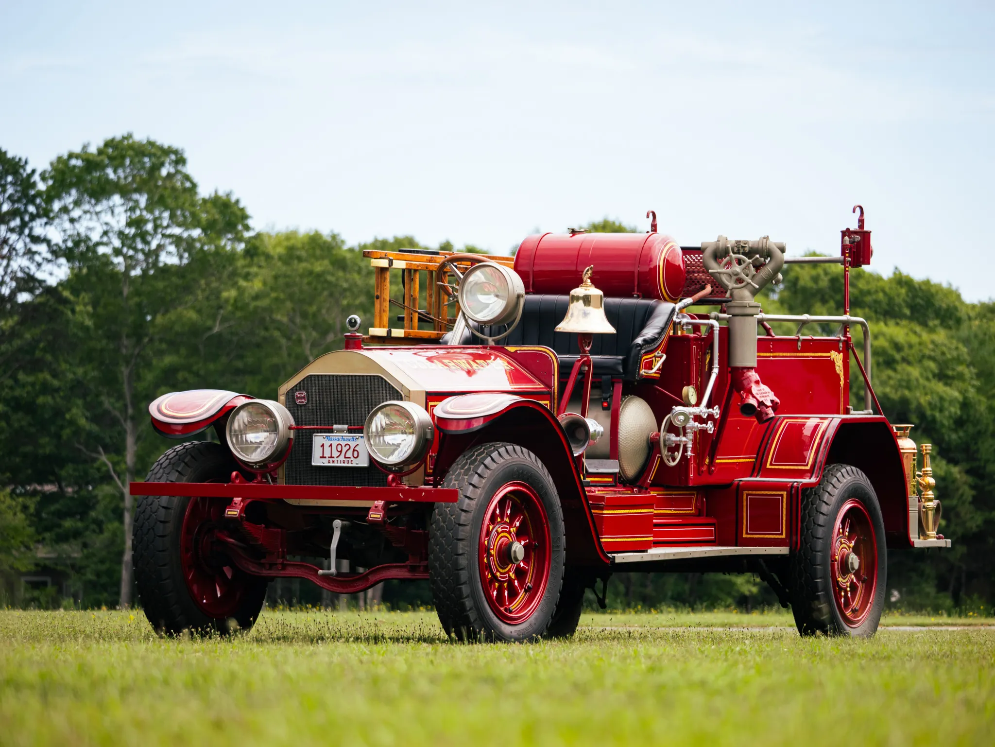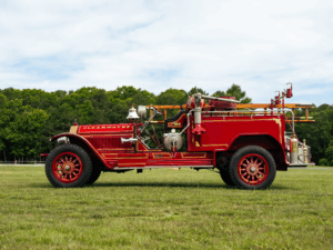 The 1926 American LaFrance Type 75 Fire Truck, Power comes from an 880ci T-head inline-six paired with a three-speed manual transmission with reverse, and the truck is equipped with a chemical extinguisher tank with a 1,000 gallon-per-minute capacity deck gun.