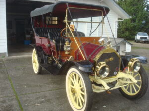 1910 Mitchell, Touring Car, 4 cylinder, 3 speed, Bosch DU-4 magneto, leather faced cone clutch, Stromberg carburetor, new ring and pinion, excellent leather upholstery, lined top, excellent brass lamps, Goodrich 36 x 4 1/2 white wall tires, full set of lamp covers, electric starter, paint finish displays some deterioration, striping is faded, extra parts. Actively toured on many HCCA National Tours. Located in Vancouver, Washington. Price: $75,000.00